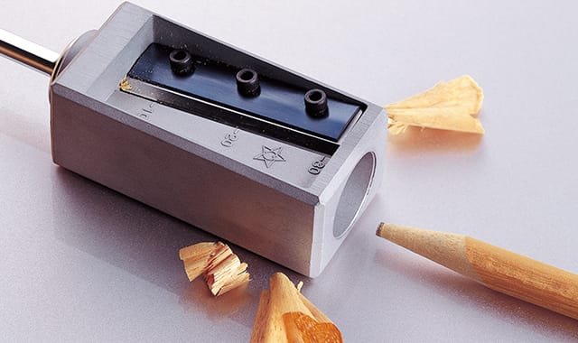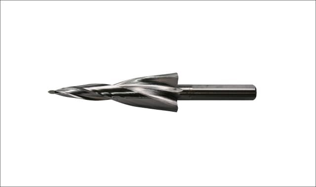 Plataus pritaikymo komplektas, kurį sudaro aukštos kokybės kūginis grąžtas ir atitinkamos formos drožtuvas kaiščio gamybai.