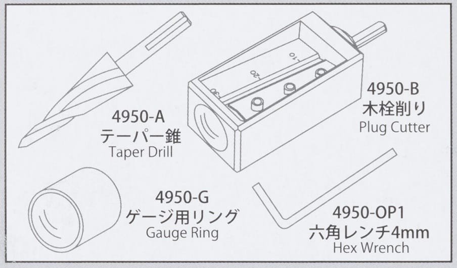 Plataus pritaikymo komplektas, kurį sudaro aukštos kokybės kūginis grąžtas ir atitinkamos formos drožtuvas. Pagrindinė rinkinio paskirtis idealiai paslėpti iškrentančiąsias ir nesuaugusias šakas, tačiau puikiai tinka ir įvairių nedidelių gaminių iš medienos gamybai, sujungiant detales kūginėmis jungtimis.