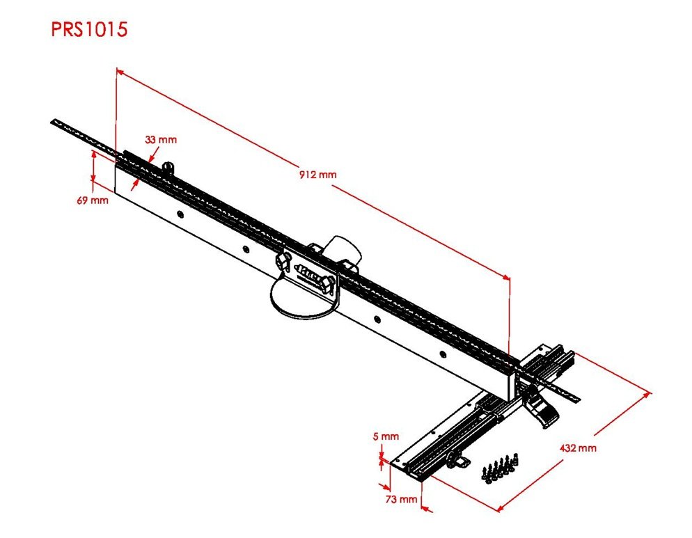 Preciziškai tiksli atraminė liniuotė frezavimo stalui, komplekte su padėties nustatymo šliaužikliu užtikrinančiu pastovų lygiagretumą stalo grioveliui. Liniuotė lengvai valdoma viena ranka ir patikimai užfiksuojama reikiamoje padėtyje dvejais fiksatoriais. Gerai matoma atskaitos sistema su padidinamuoju stiklu. Komplekte liniuotės korpusas iš anoduoto aliuminio, du slankieji atraminiai paviršiai, jungiamieji strypai, matavimo juosta, tikslaus nustatymo mikroreguliatorius, jungtis dulkių nutraukimui, apsauginis skydelis.