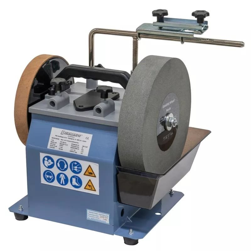 Lėtaeigės galandimo staklės Bernardo NTS 250 Pro skirtos sausam ir šlapiam įrankių galandimui. Naudojant papildomai užsakomus priedus idealiai tinka preciziškai pagaląsti peilius, žirkles, kaltus, drožybos ir kitus pjaunančius įrankius. Staklės lengvos, patogios transportuoti Staklėse sumontuotas specialus vandeniui atsparus šlifavimo akmuo. Esant 95 aps/min. sukimosi greičiui, vanduo tolygiai padengia visą šlifavimo akmens paviršių. Todėl paviršius yra aušinamas ir apsaugotas nuo perkaitimo. Pastovus sukimosi greitis užtikrina saugų darbą išvengiant kibirkščiavimo. Idealiai tinka tiek namų meistrams tiek profesionalams.
