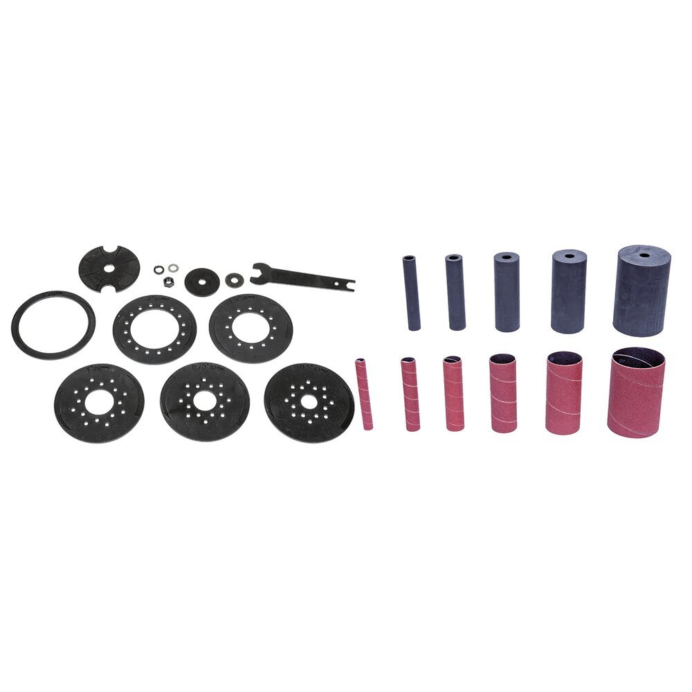 - 6 x šlifavimo įvorės Gr80: Ø 13 / 19 / 26 / 38 / 51 / 76 mm