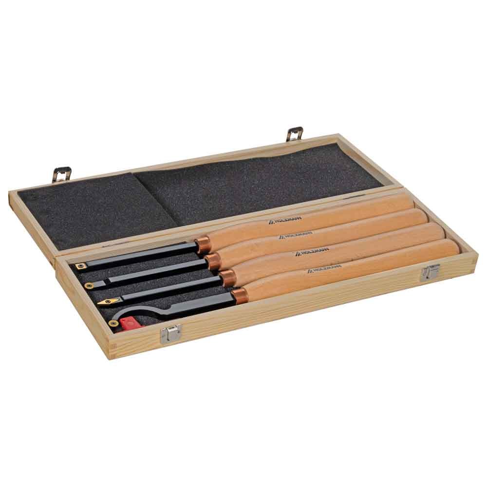 Aukštos kokybės 4 dalių tekinimo kaltų rinkinys su keičiamomis titano danga padengtomis karbido plokštelėmis – puikus pasirinkimas tiek mėgėjams, tiek profesionalams, atliekantiems įvairius medžio tekinimo darbus. Dėl ilgo, patogaus buko medienos koto ir keičiamos pjovimo dalies, šie kaltai yra itin patvarūs ir lengvai prižiūrimi. Šis rinkinys leidžia greitai ir paprastai keisti pjovimo plokšteles, todėl užtikrina nuolatinį aštrumą ir efektyvų darbą be ilgo galandinimo.